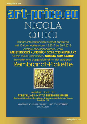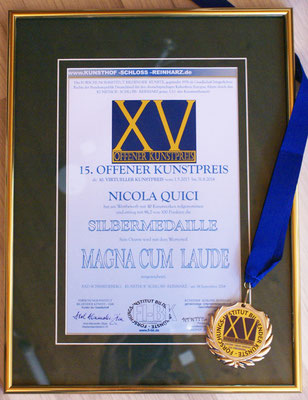 Ausgezeichnet mit dem Europäischen Akademischen Kunstpreis-der Rembrandt-Plakette in Gold (FI-Bk ) 2013-2014. SUMMA CUM LAUDA. 15-OKP (Offenen Kunst-Preis ) verbunden mit dem 10. Virtuellen Kunstpreis International Verleihung Die Silbermedaille Sept.2014